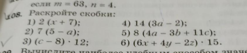 1. 2(х+7)= 2х+14. 2. 7(5-а)=35-7а. 3. (с-8)×12=12с-96. 4. 14(3а-2)=42а-28. 5. 8(4а-3в+11с)= 32а-24в+88с. 6. (6х+4у-2z)×15=90x+60y-30z