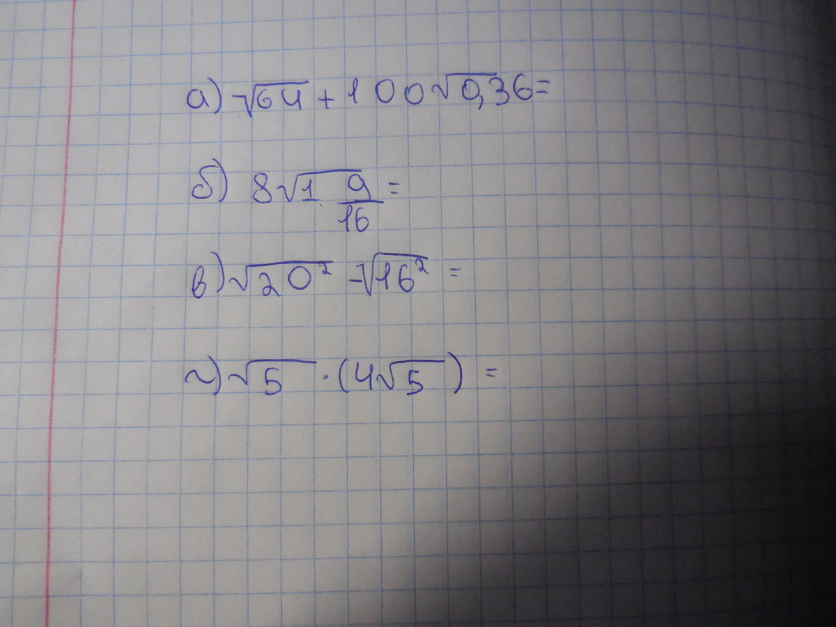1. √64+100√0,36= 8+100*0,6=8+60=68