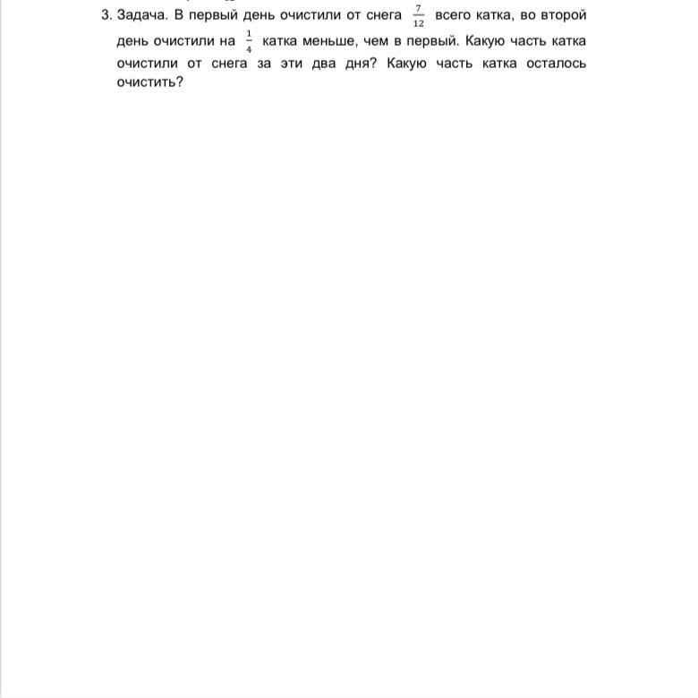 Задача. В первый день очистили от снега 7/12 всего катка, во второй