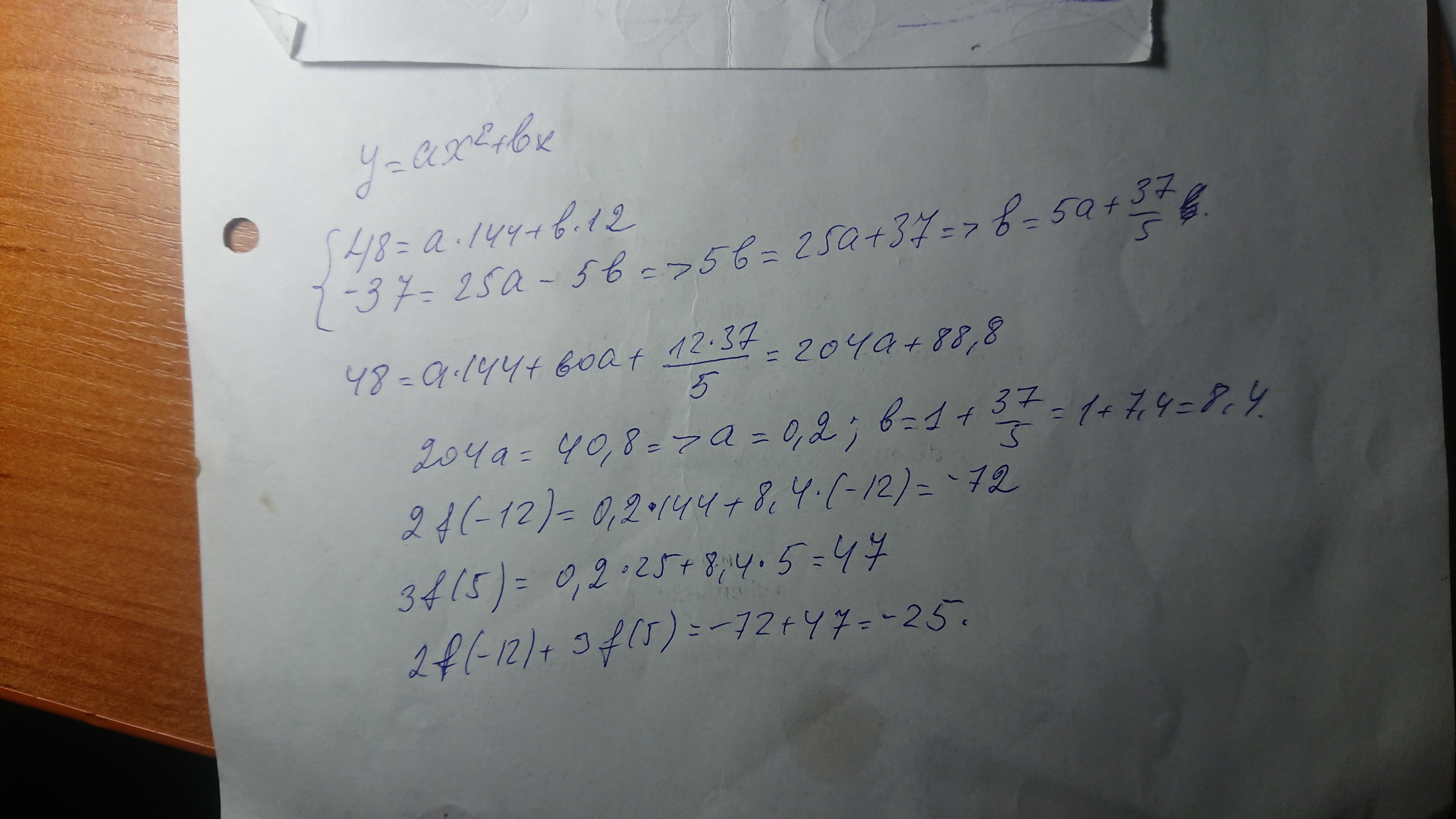2. Известно, что у=f(x) - четная функция, причем f (12) = 48, f(-5)=-37 . Найдите