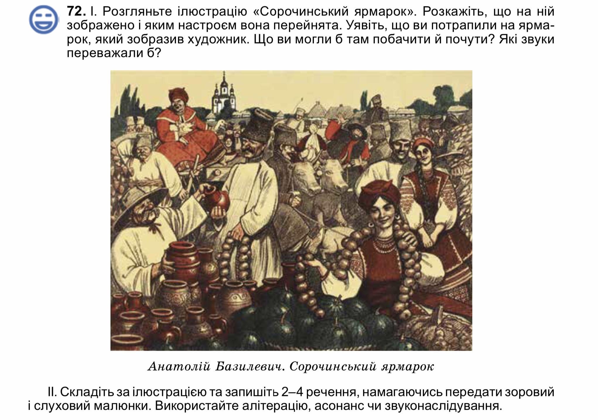 на ній зображений ринок глиняними горщиками. вона передана веселим настроєм