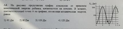 С РЕШЕНИЕМ на рисунке представлен график изменения со временем кинетической энергии ребенка качающегося на качелях в момент соответствующий точке А на графике его полная механическая энергия равна:
