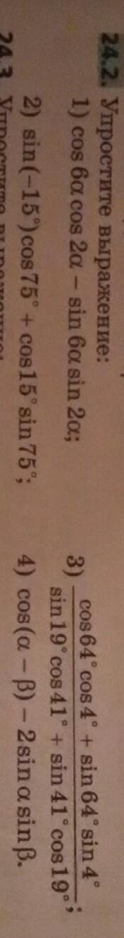 1) cos6a cos2a - sin6a sin2a = cos(6a+2a) = cos8a