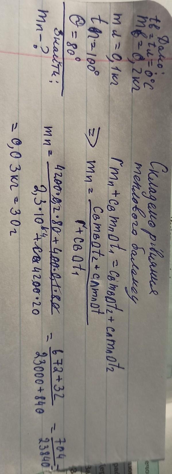 скільки водяноі пари при 100градусів треба впустити в латунний калориметр масою 100г в якому є 200г води при 0градусах щоб вода нагрілася до 80 градусів