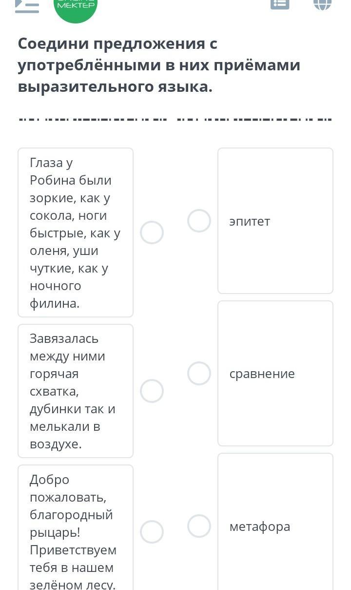 Соедини предложения с употреблёнными в них приёмами выразительного языка.