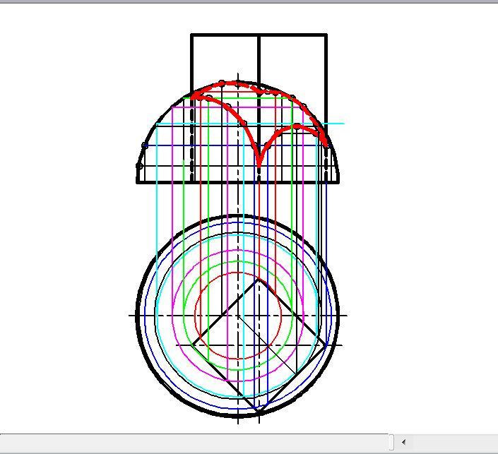 (Фото 2) Построить проекции линии пересечения поверхностей
