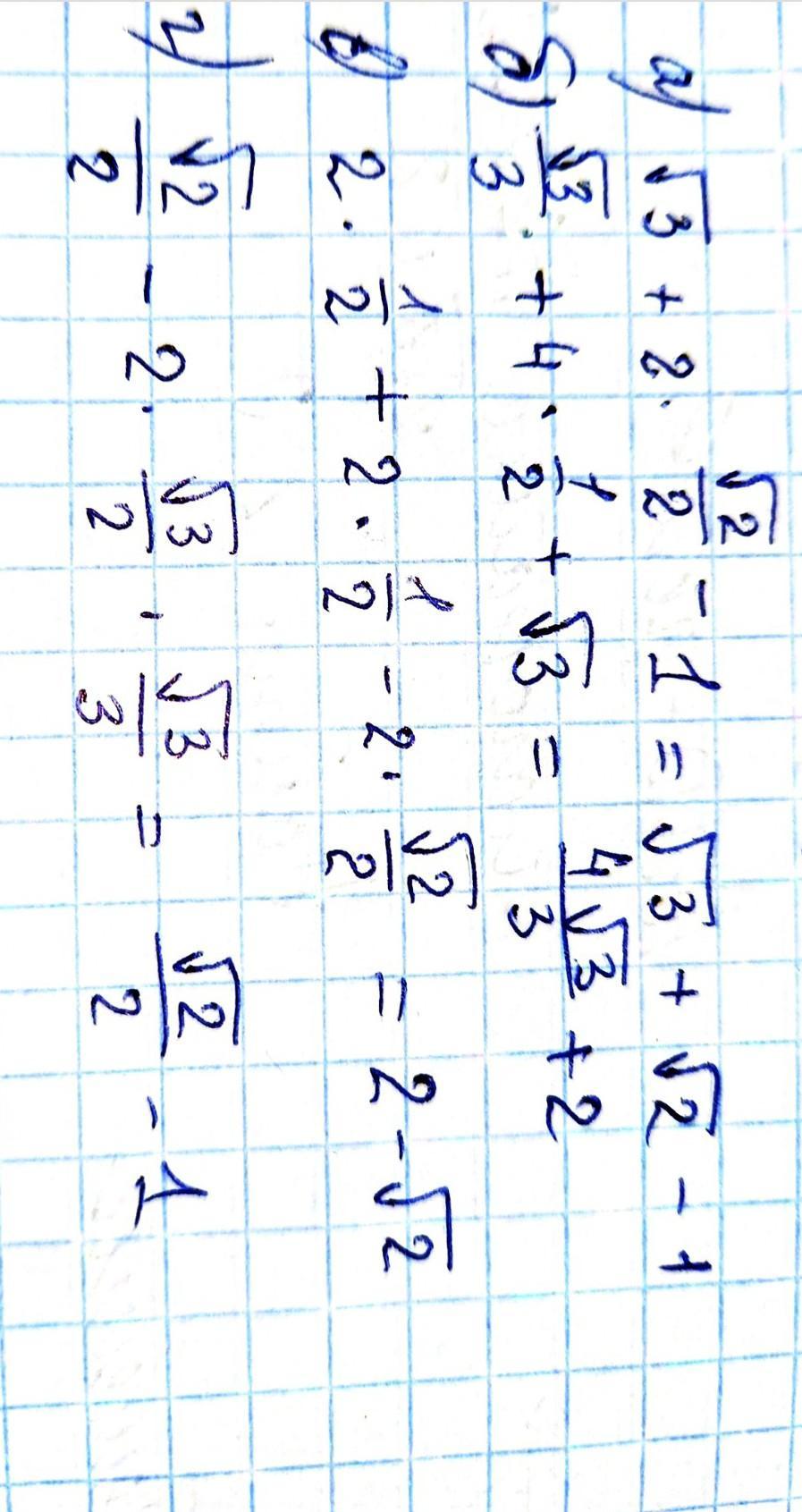 в) 2cos 60 + 2sin 30 - 2sin 45;