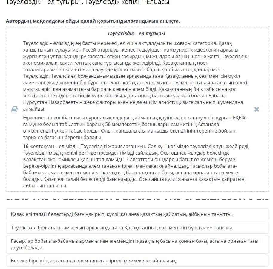 Тәуелсіз ел болғандығымыздың арқасында ғана Қазақстанның сөзі мен ісін бүкіл әлем таныды.
