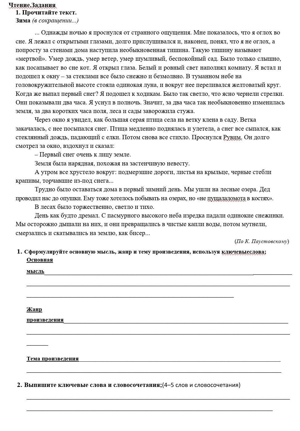 1. Сформулируйте основную мысль, жанр и тему произведения, используя ключевыеслова;