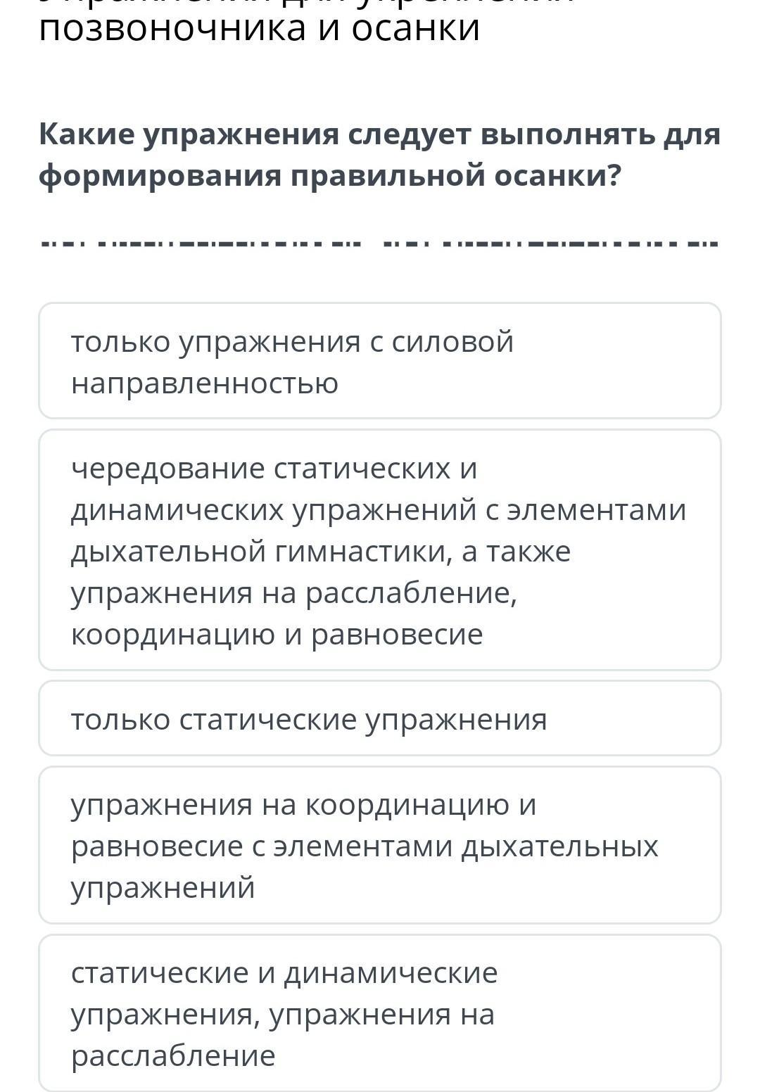 Объяснение:остальные упражения дают не на ровную осанку, а на силу и скорость.