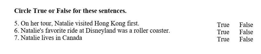 Circle True or False for these sentences.