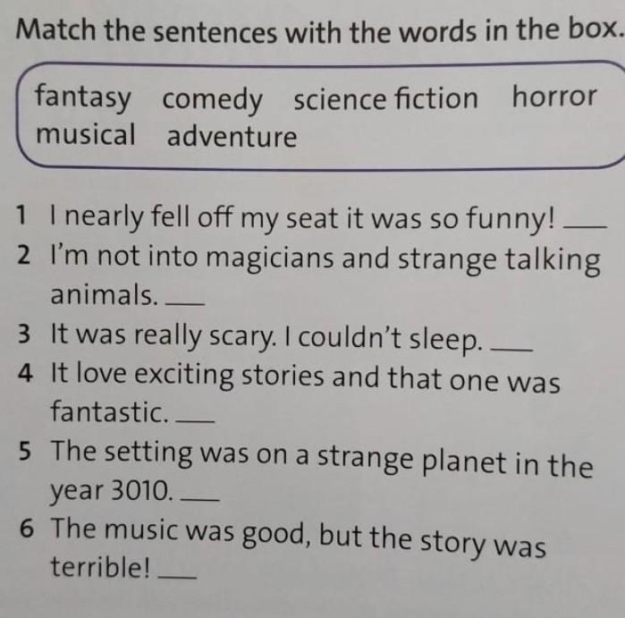 5) В научной фантастике (science fiction) действия в основном происходят в будущем / на других планетах и тд.