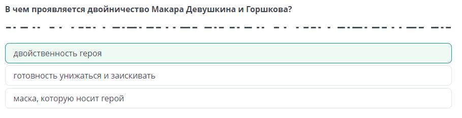 В чем проявляется двойничество Макара Девушкина и Горшкова? 1)двойственность героя 2)готовность унижаться и заискивать