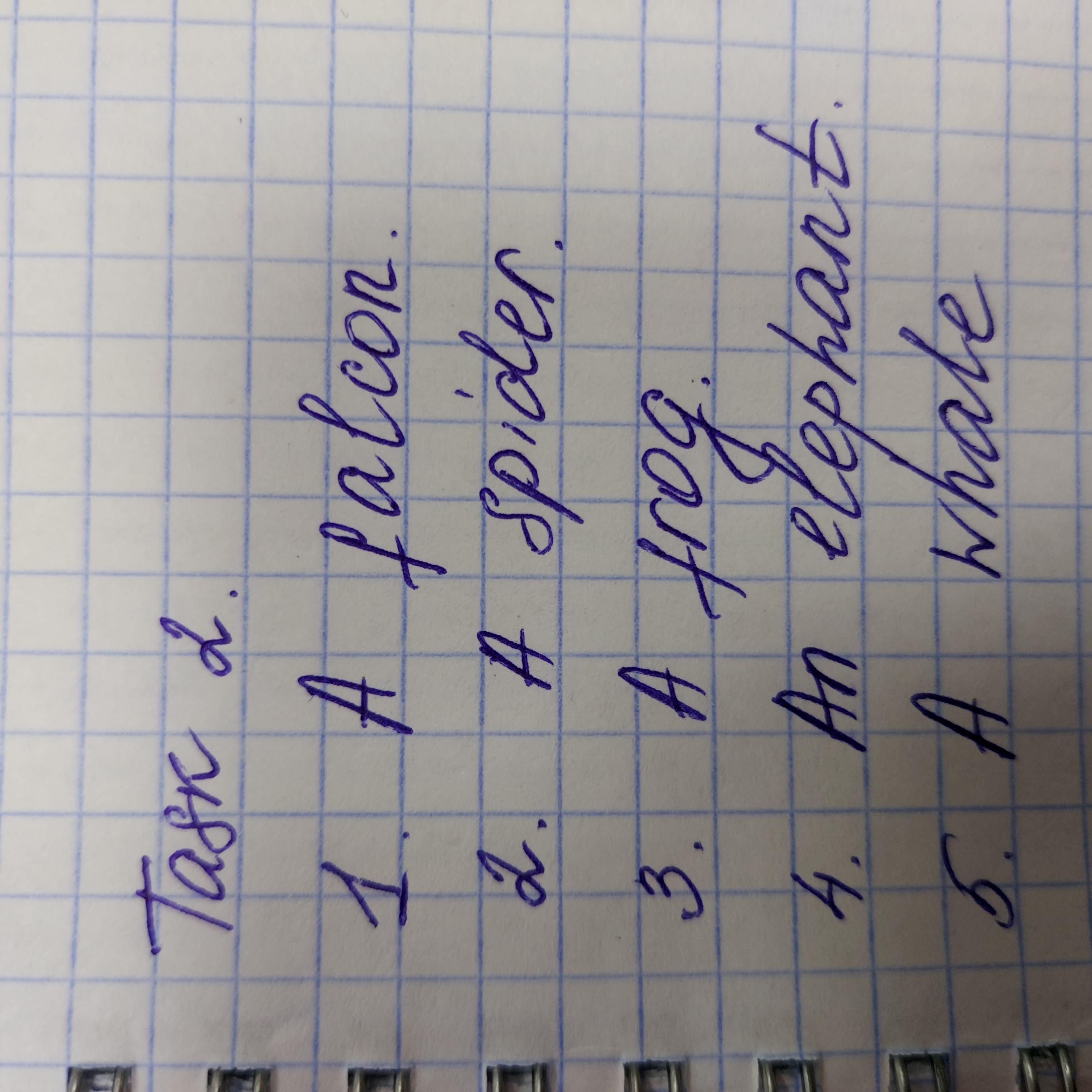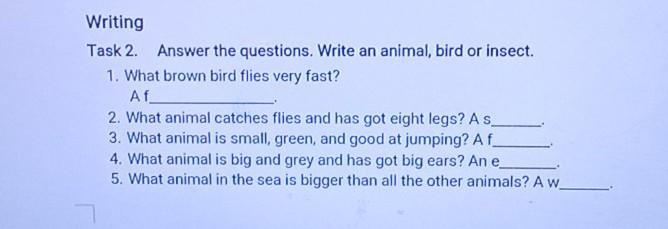 Task 2. Answer the questions. Write an animal, bird or insect.