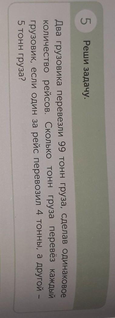 Два грузовика перевезли 99 тонн груза, сделав одинаковое
