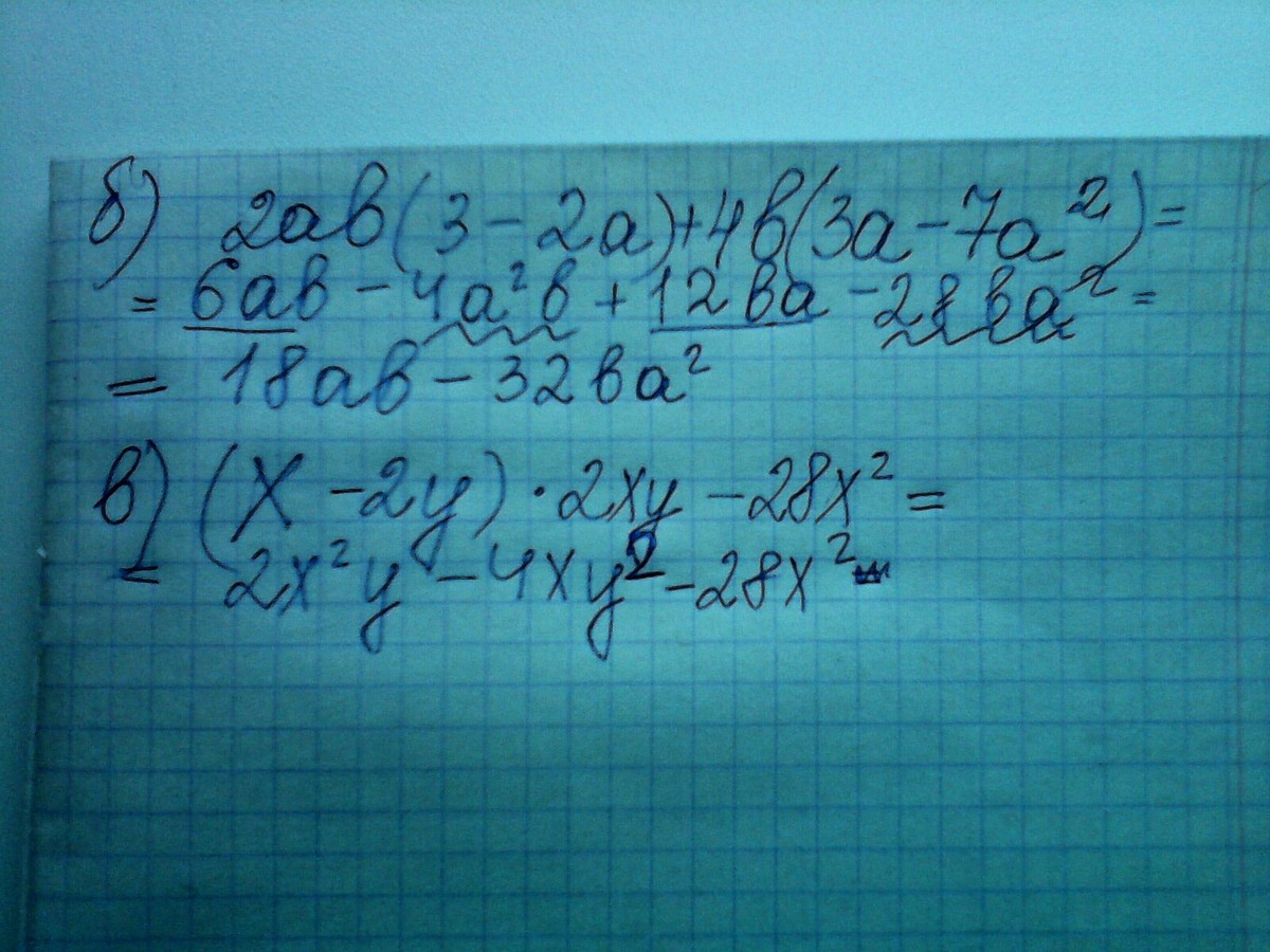 2ab(3-2a)+4b(3a-7a²)=6ab-4a²b+12ab-28a²b=18ab-32a²b=2ab(9-16a)
