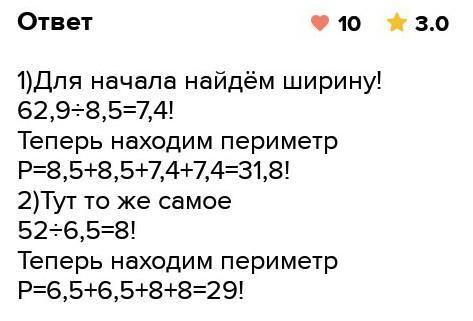 площадь прямоугольника 62 9/10 дм квадрата длина 8 1/2 дм. Найдите периметр этого прямоугольника.