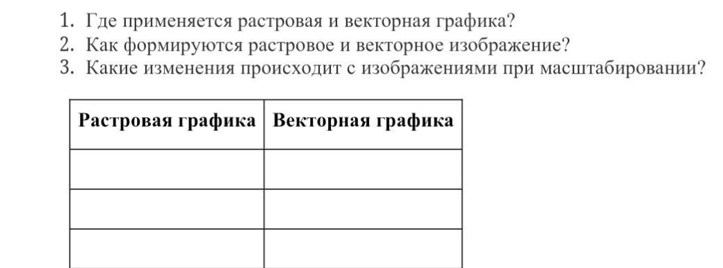 2.Заполнить таблицу, ответив на следующие вопросы: