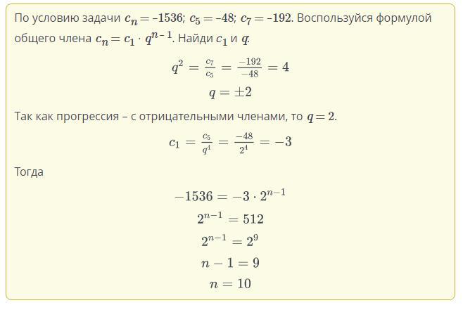 Срочно.число (-1536)является членом геометрической прогрессии с отрицательными членами где с5=-48 с7=-129.Укажи его номер