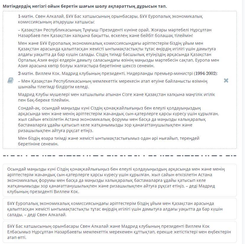 Мәтіндердің негізгі ойын беретін шағын шолу ақпараттың дұрысын тап.