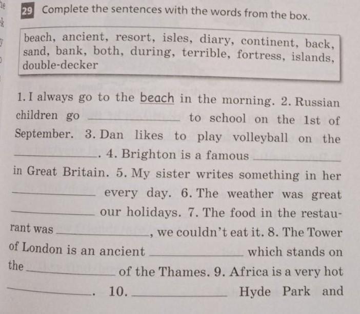 в Великобритании. 5. моя сестра пишет что-то в ней каждый день. 6. погода была отличная в наши праздники. 7. еда в ресторане была такая, что мы не могли ее есть. 8. Башня