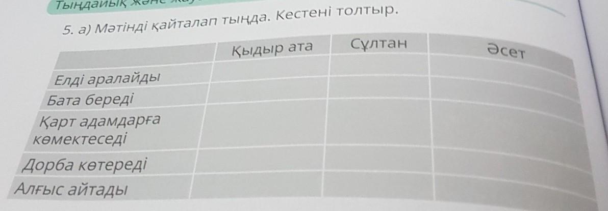 5. а) Мәтінді қайталап тыңда. Кестені толтыр.