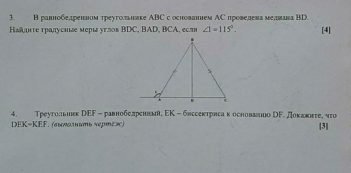 рассмотрим треугольники DEK и FEK. в них DE = EF как стороны равнобедренного треугольника, прилежащие к основанию, угDEK = угFEK (т.к. биссектриса делит угDEF на два равных угла), а угEDK = угEFK как углы при основании равнобедренного треугольника, следовательно, треугольники DEK и FEK равны по двум углам и стороне между ними, что и требовалось доказать.