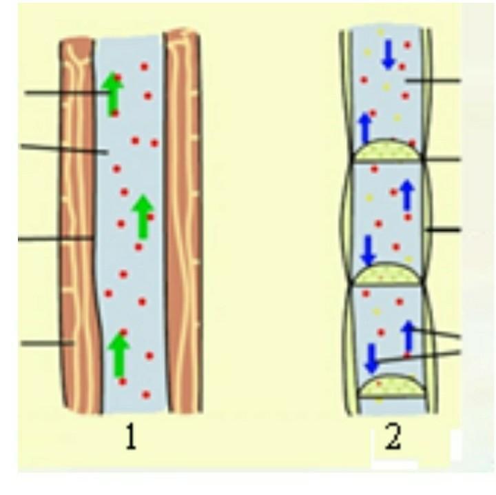 1 — ксилема. представлена сосудами, образованные мертвыми клетками. обеспечивает транспорт воды с растворенными в ней минеральными веществами; отвечает за восходящий ток. ТРУБКА:)
