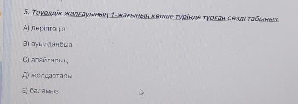 5. Тәуелдік жалғауының 1-жағының көпше түрінде тұрған сөзді табыңыз.