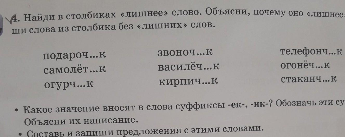4. Найди в столбиках «лишнее» слово. Объясни, почему оно «лишнее». Выпи-