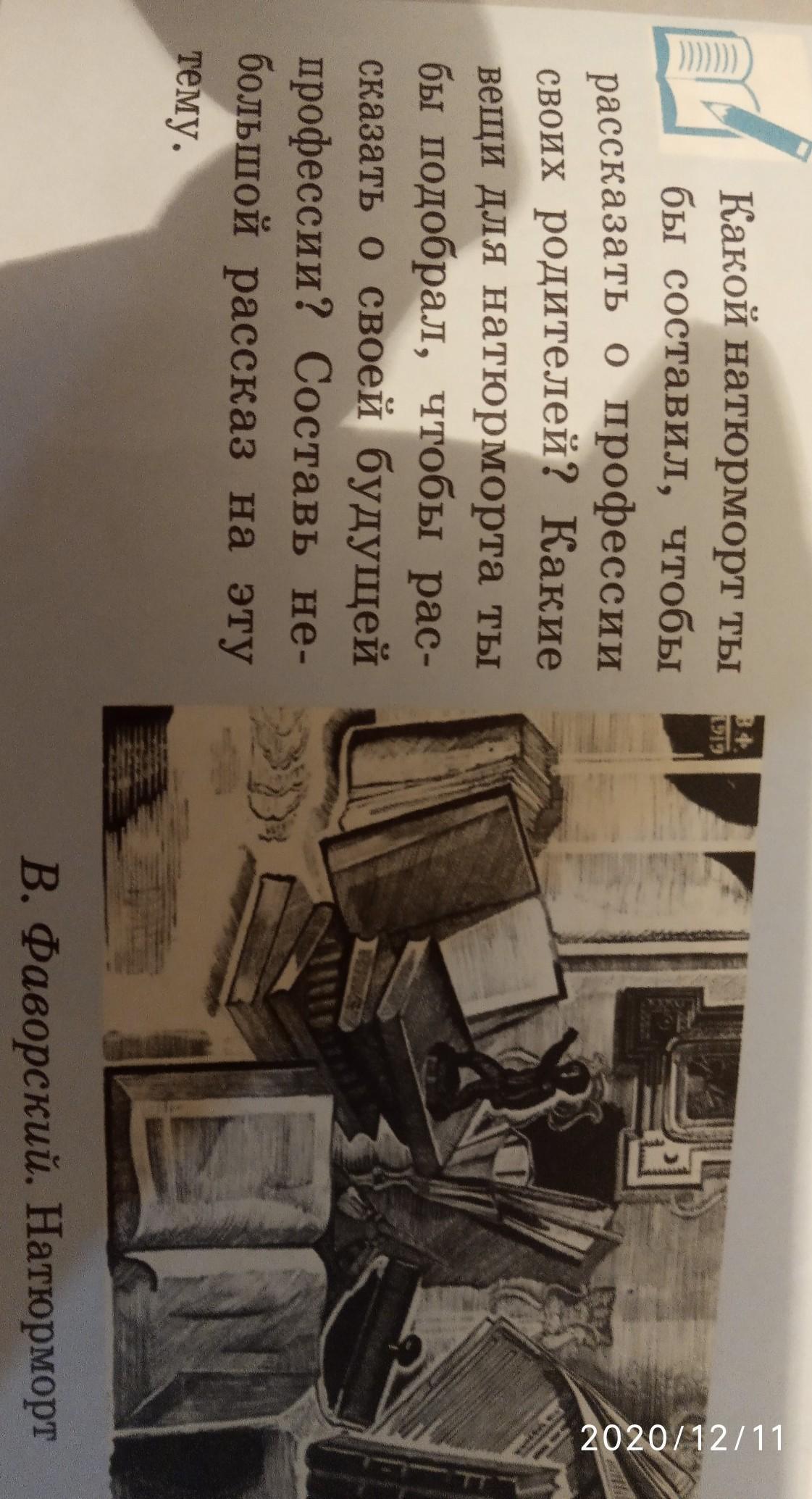 Натюрморт - для отца( папы) мне кажется ему подходит галстук который бы лежал на стуле . Маме ( матери) подошел бы фартук , лежащий рядом . Отец ( папа) работает в офисе и постоянно носит костюмы и галстуки у него их очень много. А мама домохозяйка и когда готовила или убиралась всегда надевает фартук . Я хочу учиться .....( любая профессия) на дизайнера ( не обязательно) . Поэтому я считаю что моя вещь это будет книга , карандаш и альбом( любая вещь которая относиться к этой профессии) . Вот и получается интересный натюрморт . ( опишите что как и где лежит , фартук галстук можно заменить) На стуле висит фартук и галстук , а рядом на столе книги , альбом и карандаши .