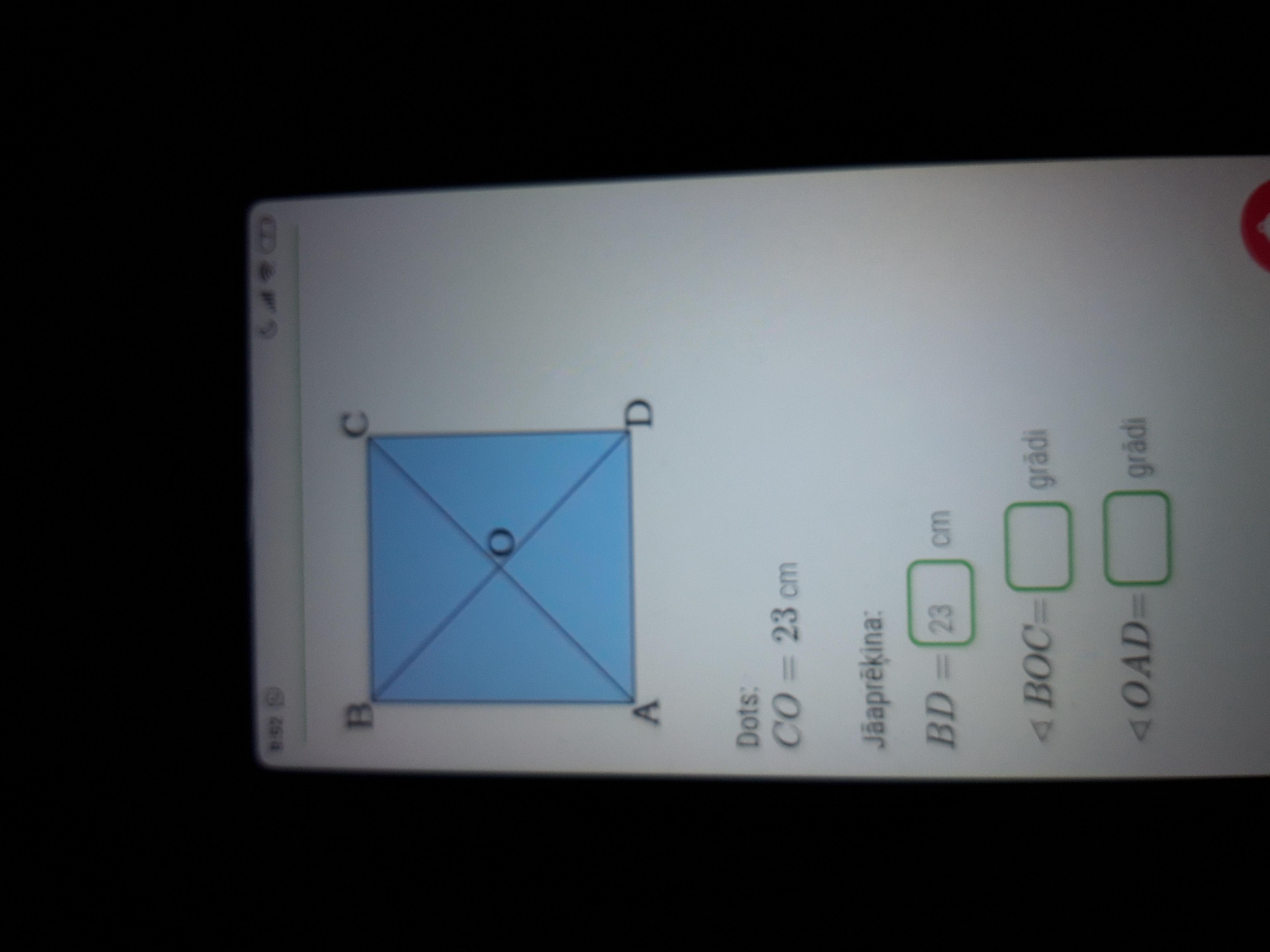 BD= 46cm, BOC = 90, OAD = 45