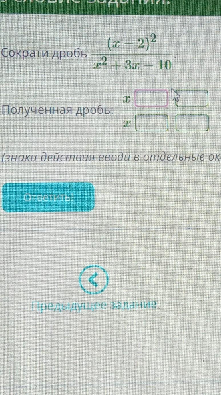 (знаки действия вводи в отдельные окошечки).Уравнение x2+7x−6=0 является
