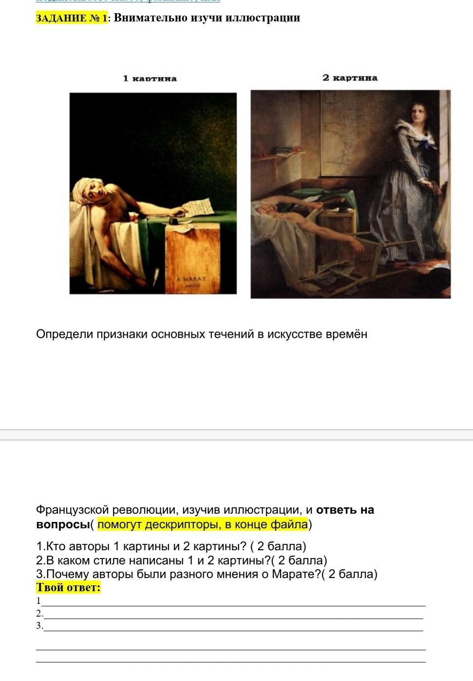 3. 1 картина - Жак-Луи Давид хотел привлечь внимание своего друга Марата, как французского героя