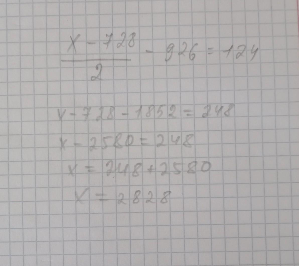 Учитель задумал число. Если из него вычесть 728, поделить на 2 и вычесть 926 получится 124. какое число задумал учитель?