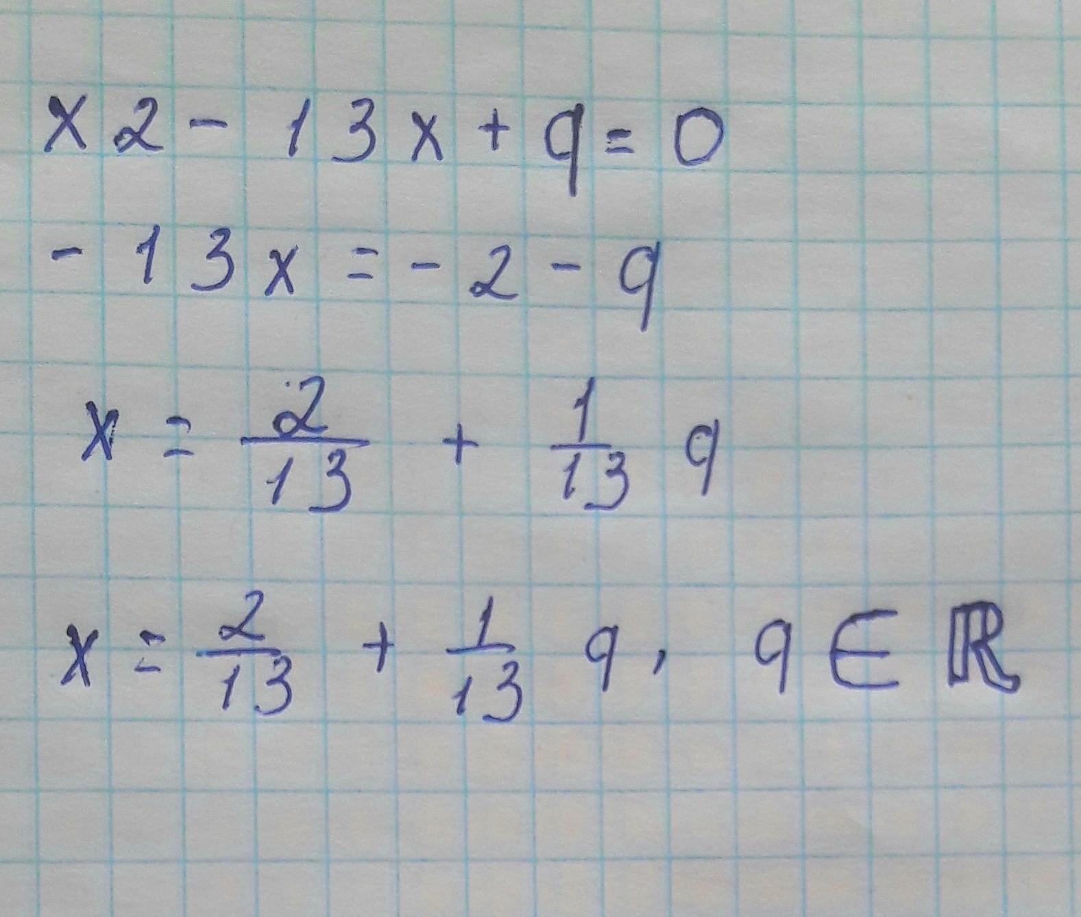 В уравнении х2 -13х +q =0 один из корней равен 3. Найдите второй корень и коэффициент q.