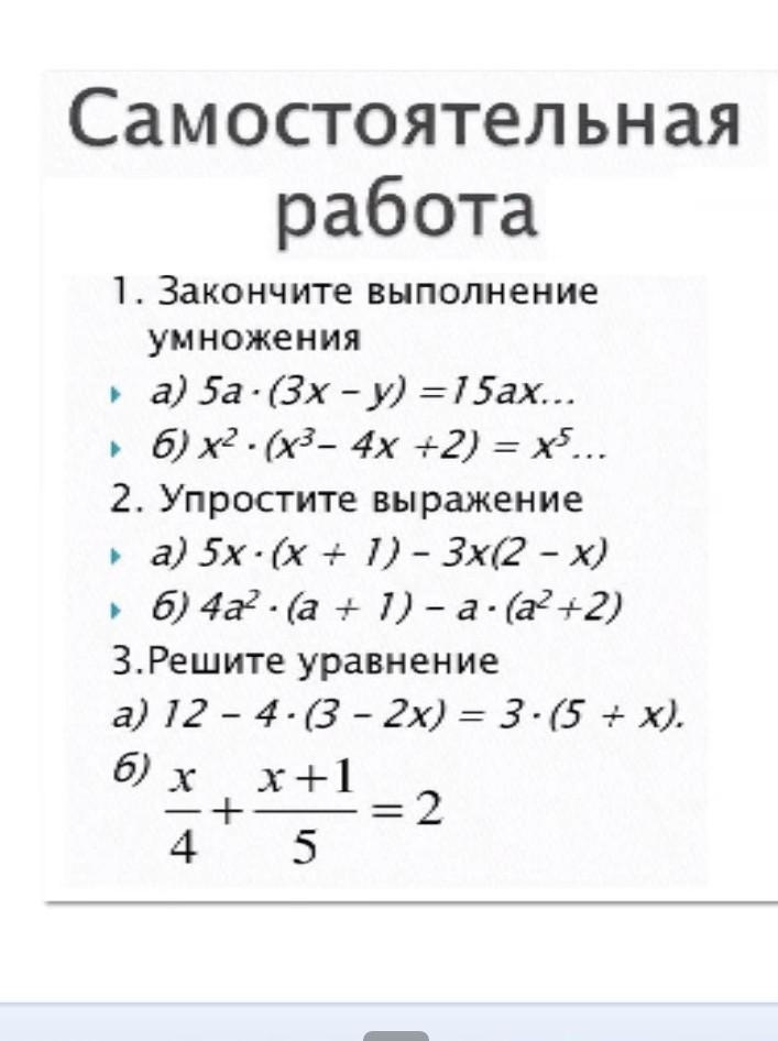 Ответ: 1. a) 15ax-5ay ; б) x^5-4x^3+2x^2