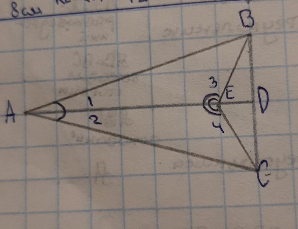 ⇒ ΔАВС равнобедренный, АЕ биссектриса, высота и медиана, т.Е равноудалена от В и С, ΔЕВС равнобедренный,