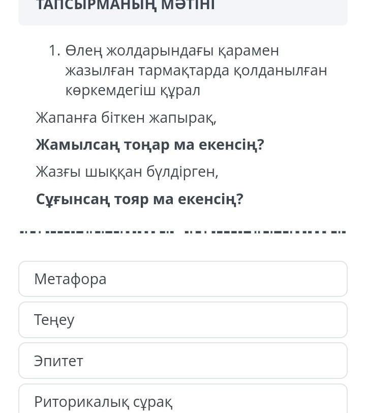 Өлең жолдарындағы қарамен жазылған тармақтарда қолданылған көркемдегіш құрал Жапанға біткен жапырақ С.О.Р 5 КЛАСС КӨМЕК