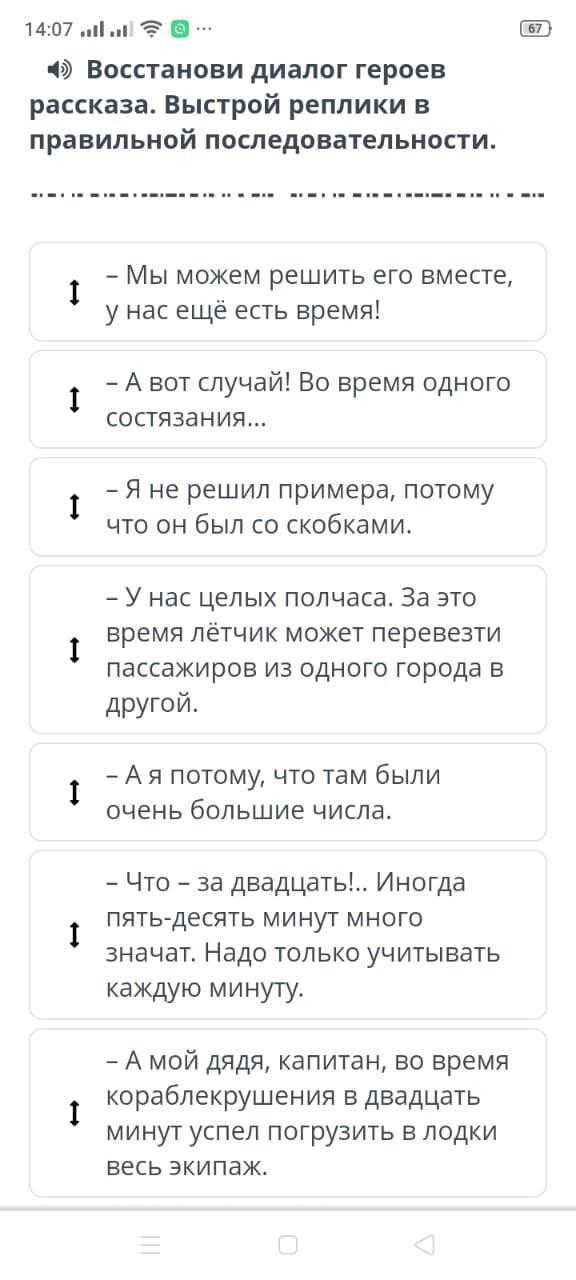 Восстановите диалог героев рассказа .Выстрой реплики в правильной последовательности