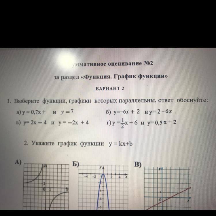 Помогите Пожалуйста срочно 1. Выберите функции, графики которых параллельны, ответ обоснуйте: