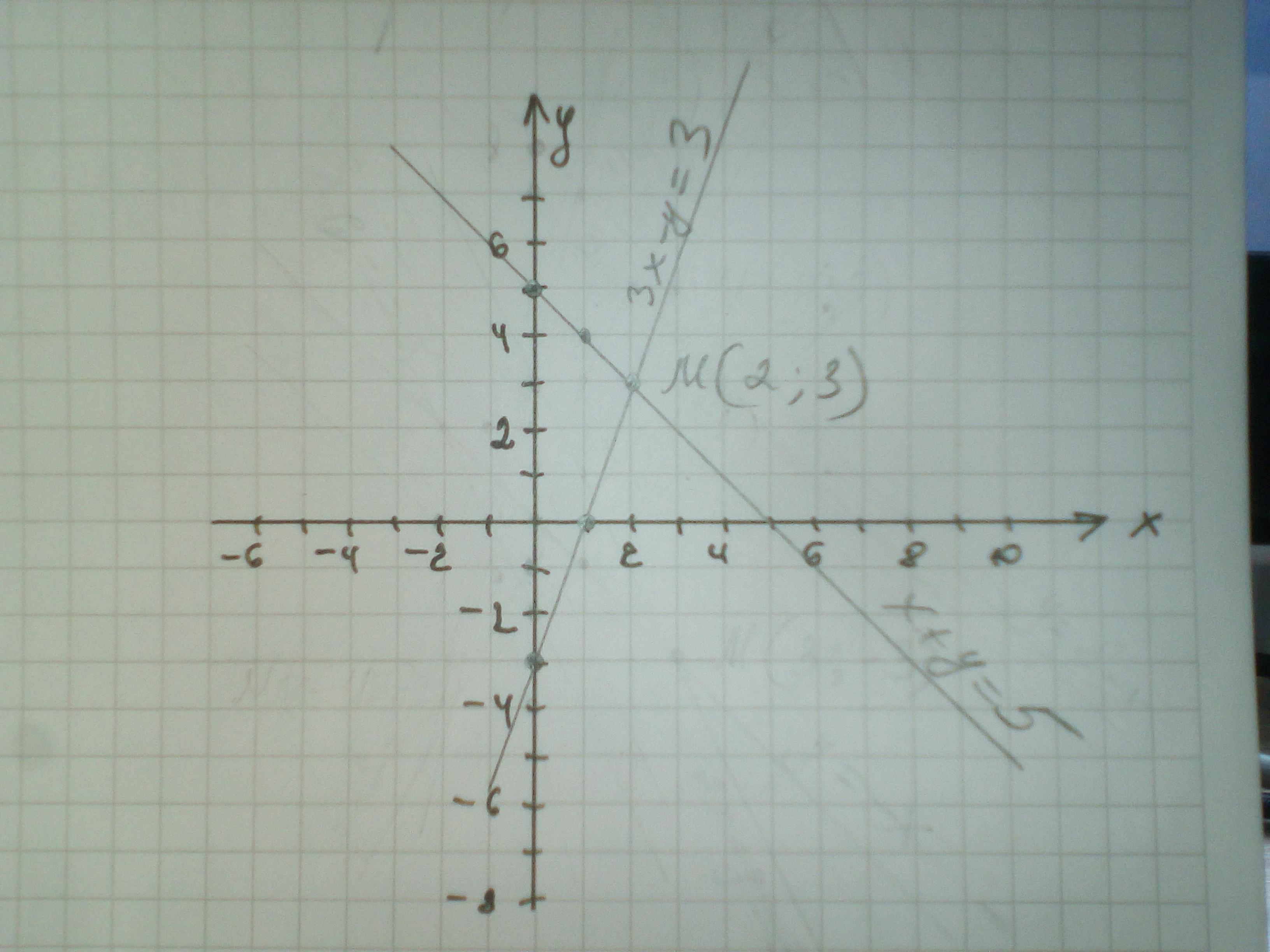 3х-у=3; у = 3x-3; х=0 у=-3; х=1 у=0