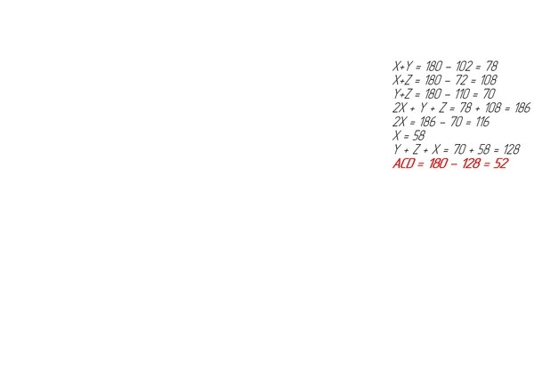 Диагонали четырехугольника ABCD,вершины которого расположены на окружности,пересекаются в точке М . Известно,что угол ABC=72,угол BCD=102, угол AMD=110. Найдите угол ACD