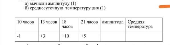 Чтобы найти среднесуточную t дня, нужно сложить все значения и разделить на кол-во значений (здесь ((-1)+3+10+5)/4=17/4=+4, 25°С