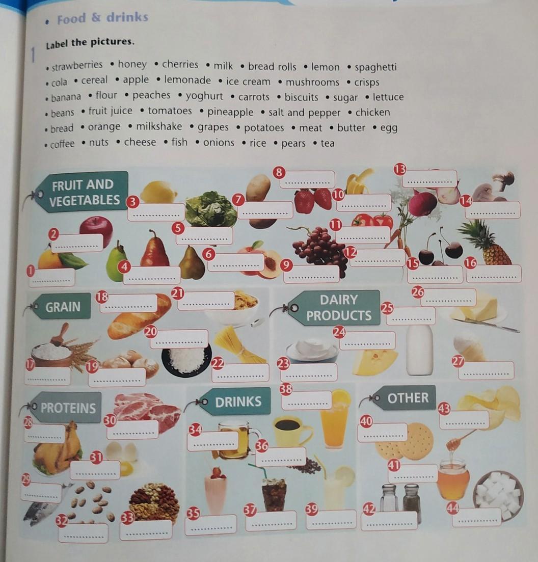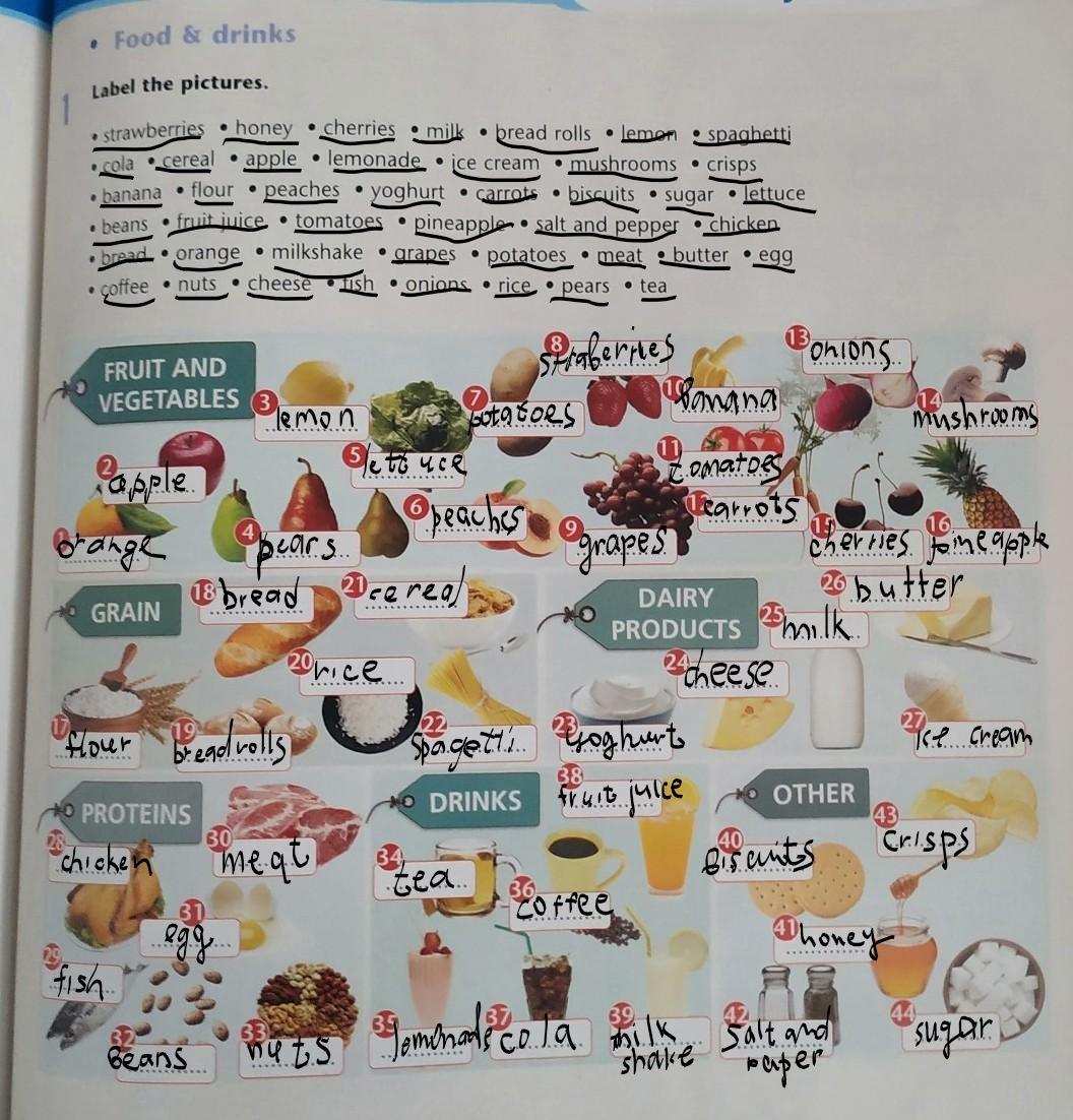 • cola • cereal • apple • lemonade ice cream mushrooms • crisps