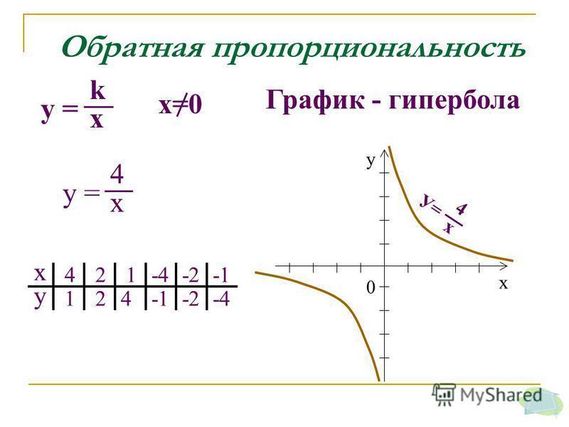 Графиком какой из функций y = 1/4x, y =х/4, y = 4/х является гипербола? Постройте эту гиперболу.