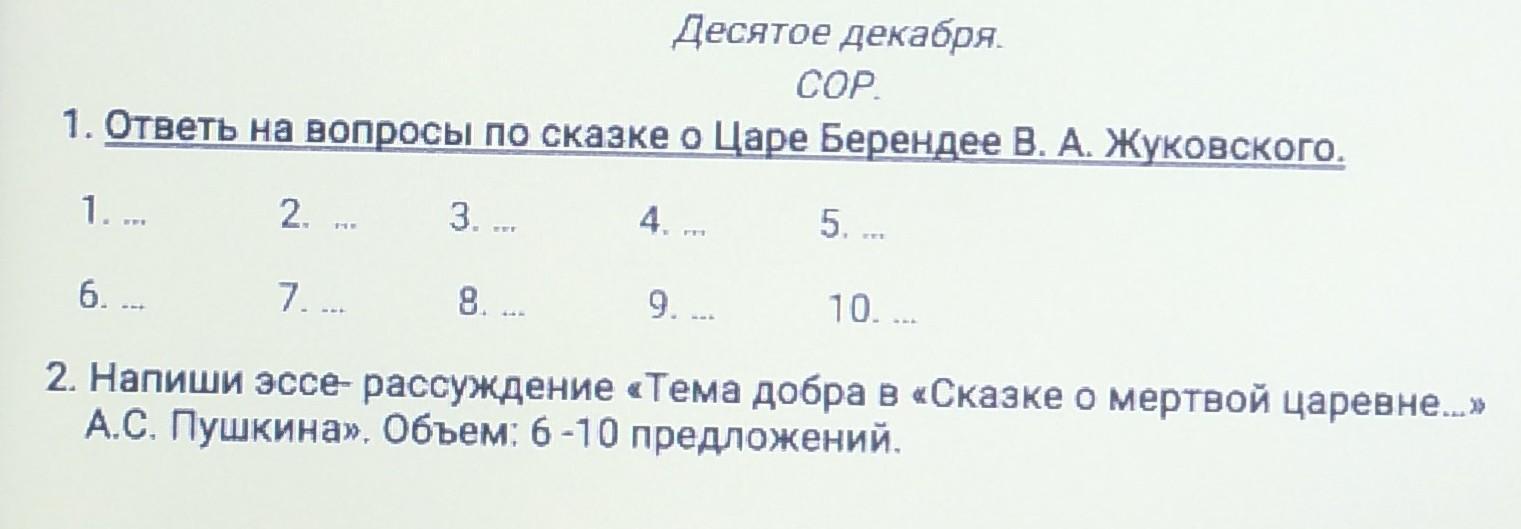 1. Ответы на вопросы по сказке о Царе Берендее В. А. Жуковского.