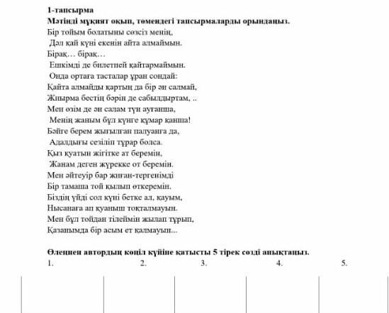 Өлеңнен автордың көңіл күйіне қатысты 5 тірек сөзді анықтаңыз. 1. 2. 3. 4. 5.