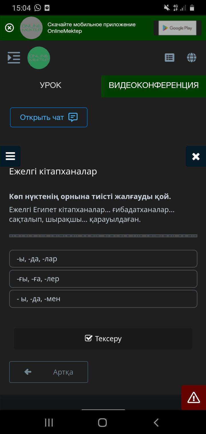Ежелгі кітапханалар Көп нүктенің орнына тиісті жалғауды қой. Ежелгі Египет кітапханалар... ғибадатханалар... сақталып, шырақшы... қарауылдаған. - ы, -да, -мен -ғы, -ға, -лер -ы, -да, -лар Артқа Тексеру помогите пожалуйста