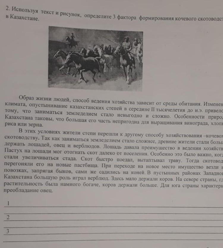 1) из-за непригодности большей части Казахстана для выращивания винограда ,зерна и риса некоторые люди перешли на кочевое скотоводство